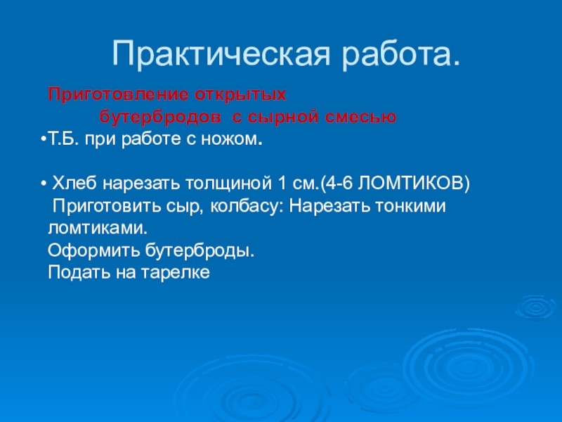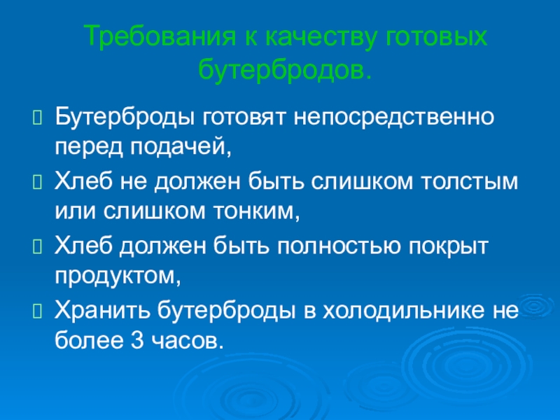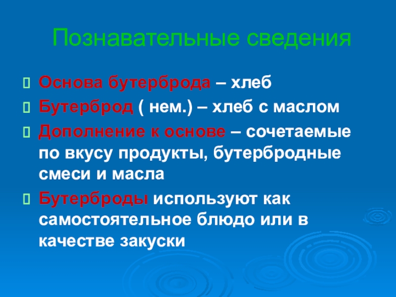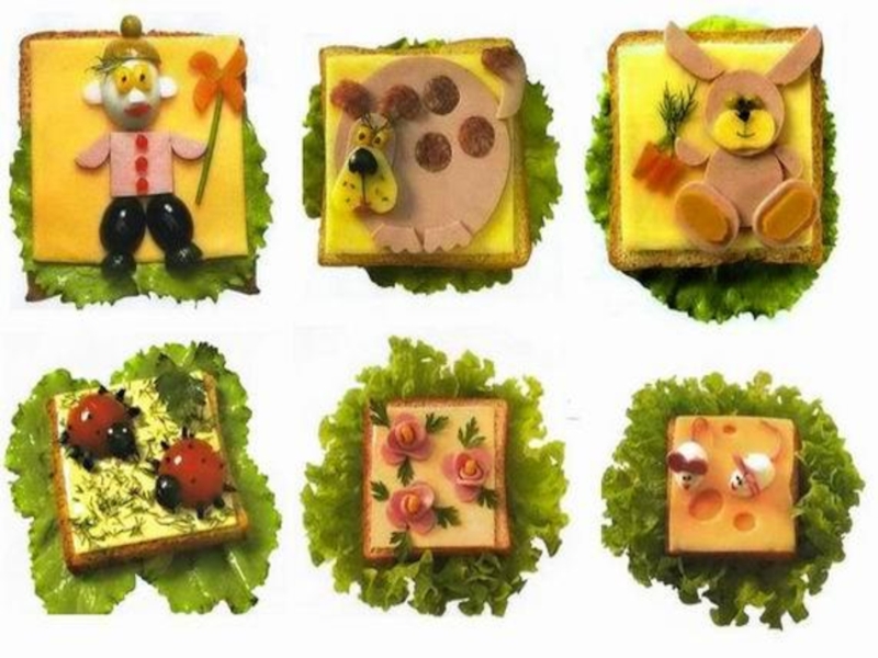 Для простых открытых бутербродов используют 1 -2 вида продуктов;