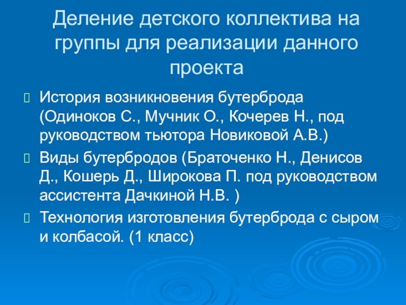 Слайд 4Деление детского коллектива на группы для реализации данного проекта