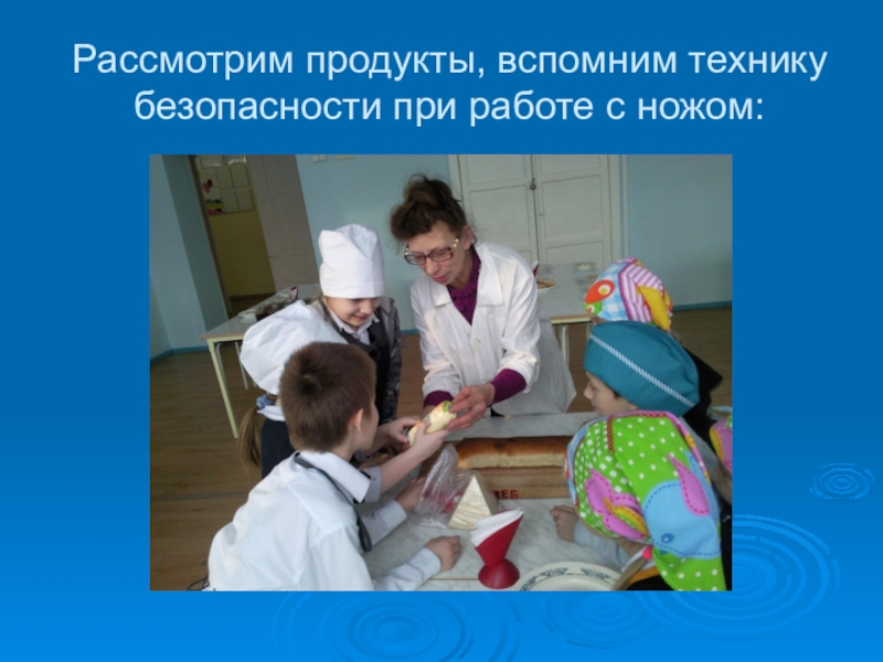 Слайд 31Рассмотрим продукты, вспомним технику безопасности при работе с ножом: