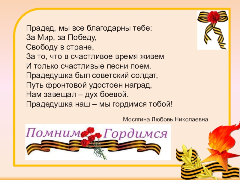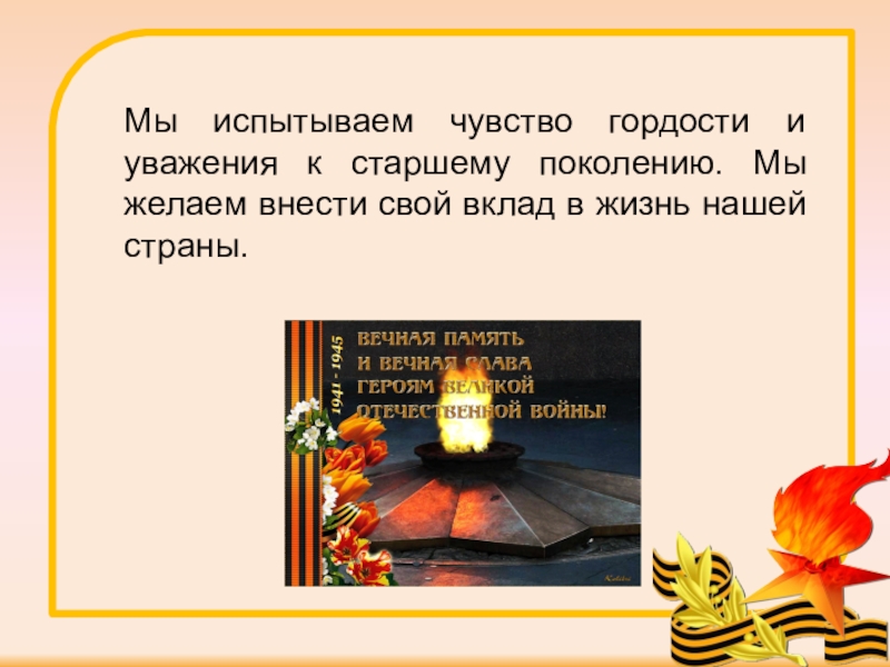 Слайд 23Мы испытываем чувство гордости и уважения к старшему поколению. Мы желаем