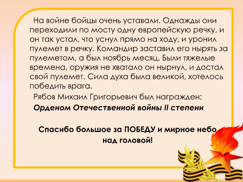 Слайд 9 На войне бойцы очень уставали. Однажды они переходили