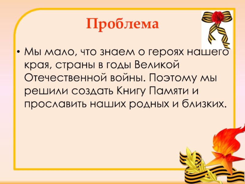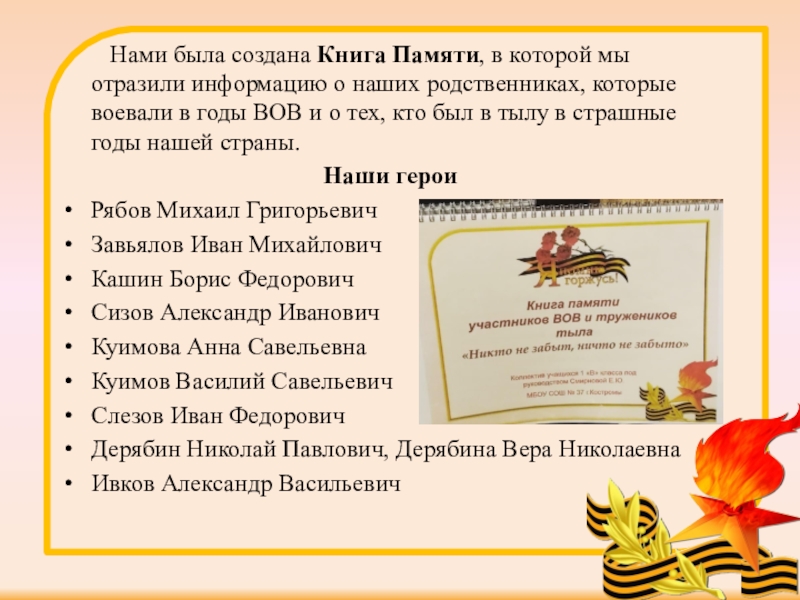 Великой Отечественной войны. Поэтому мы решили создать Книгу Памяти и прославить наших родных и близких.