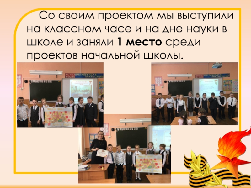 часе и на дне науки в школе и заняли 1 место среди проектов начальной школы.