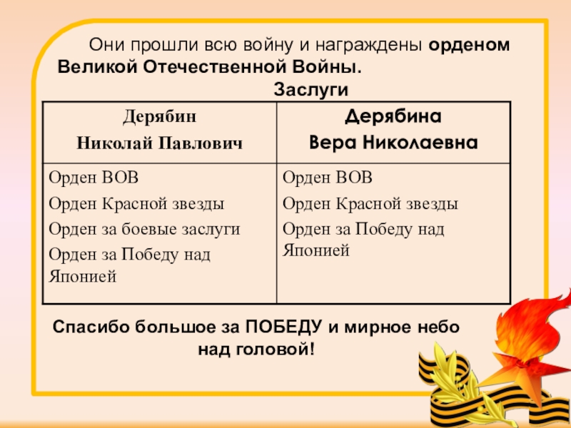 Слайд 20 Они прошли всю войну и награждены орденом Великой