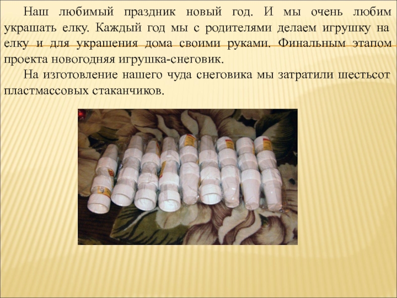 На изготовление нашего чуда снеговика мы затратили шестьсот пластмассовых стаканчиков.