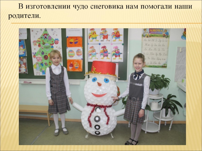 Слайд 21В изготовлении чудо снеговика нам помогали наши родители.