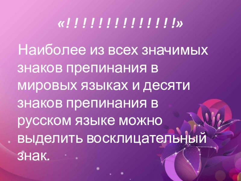 Наиболее из всех значимых знаков препинания в мировых языках и десяти знаков препинания в русском языке можно выделить восклицательный знак.