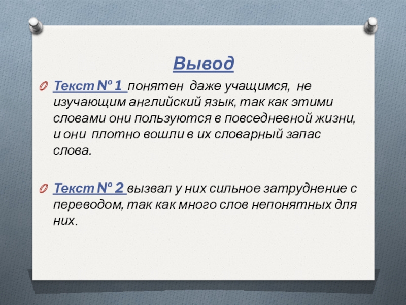Текст № 2 вызвал у них сильное затруднение с переводом, так как много слов непонятных для них.
