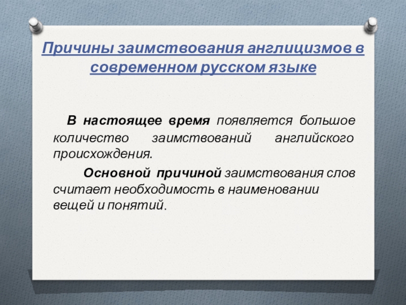Слайд 10Причины заимствования англицизмов в современном русском языке
