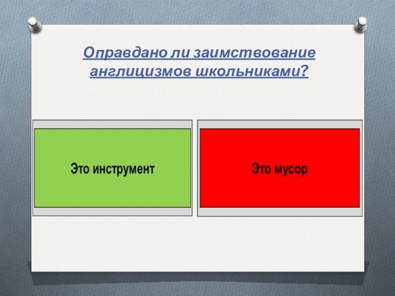 Слайд 23Оправдано ли заимствование англицизмов школьниками?