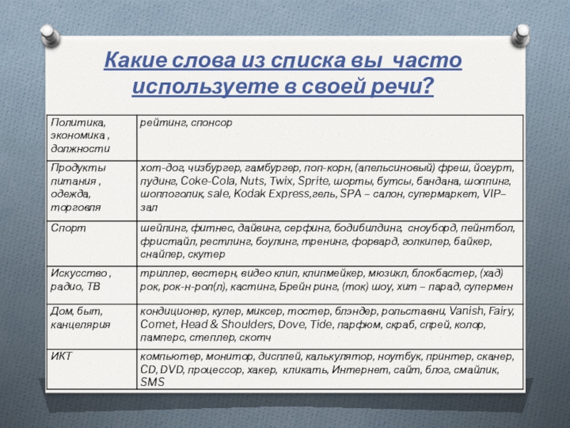 Слайд 20Какие слова из списка вы часто используете в своей речи?
