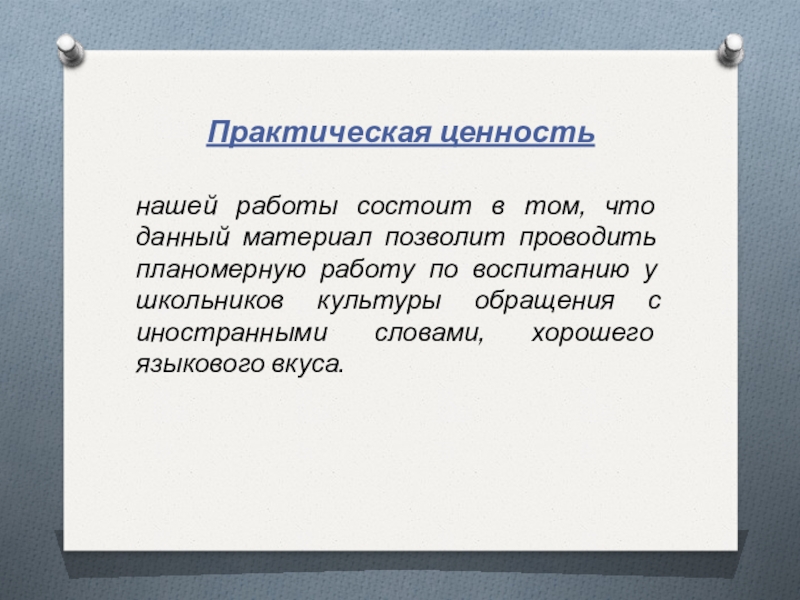 планомерную работу по воспитанию у школьников культуры обращения с иностранными словами, хорошего языкового вкуса.
