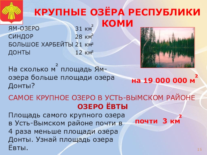 На сколько м площадь Ям-озера больше площади озера Донты?