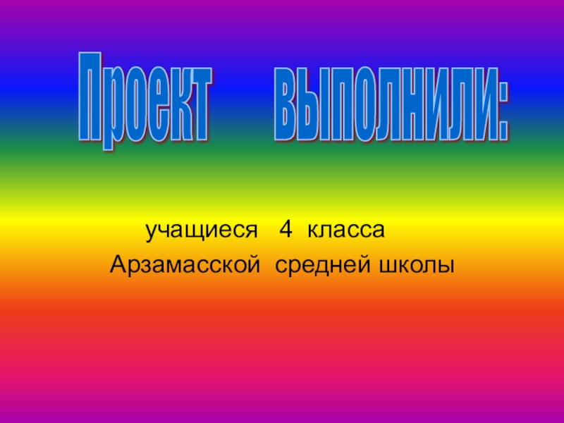 учащиеся 4 класса Арзамасской средней школы Проект выполнили: