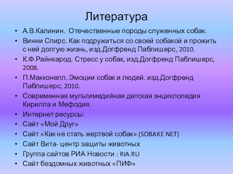 К.Ф.Райнкарод. Стресс у собак, изд.Догфренд Паблишерс, 2008.