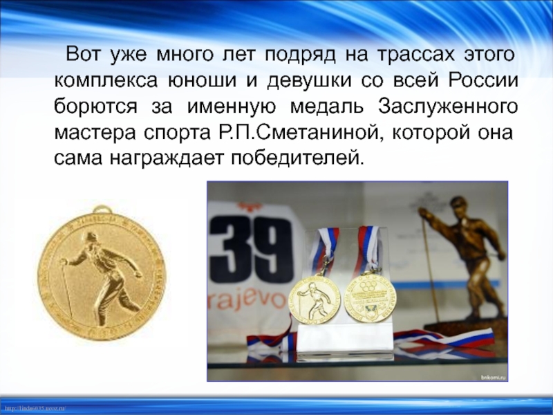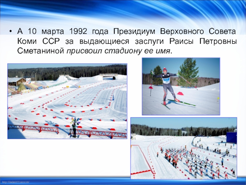 Слайд 11Республиканский лыжный комплекс имени Раисы Сметаниной