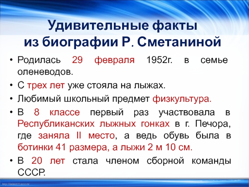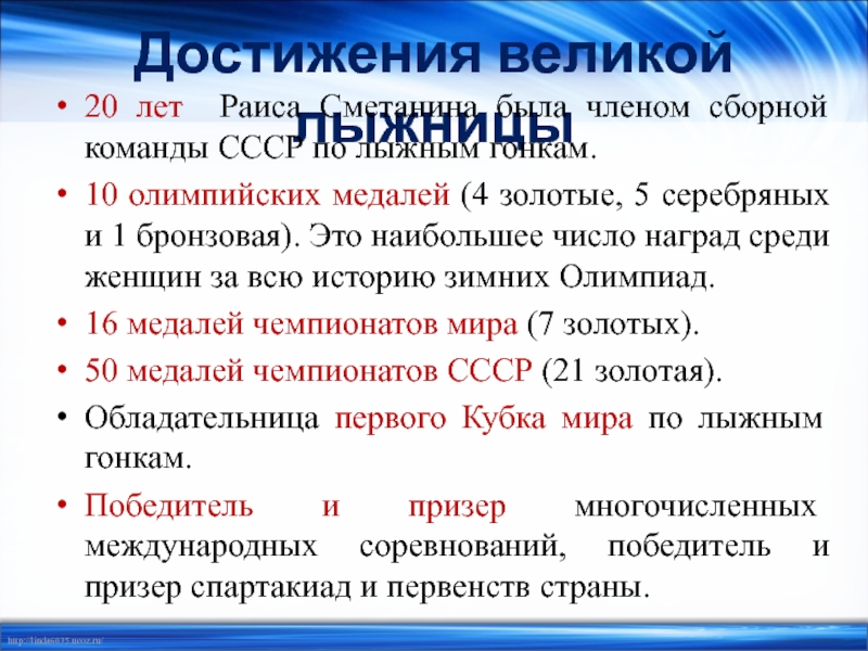 2.Рассказать о спортивных достижениях великой лыжницы.