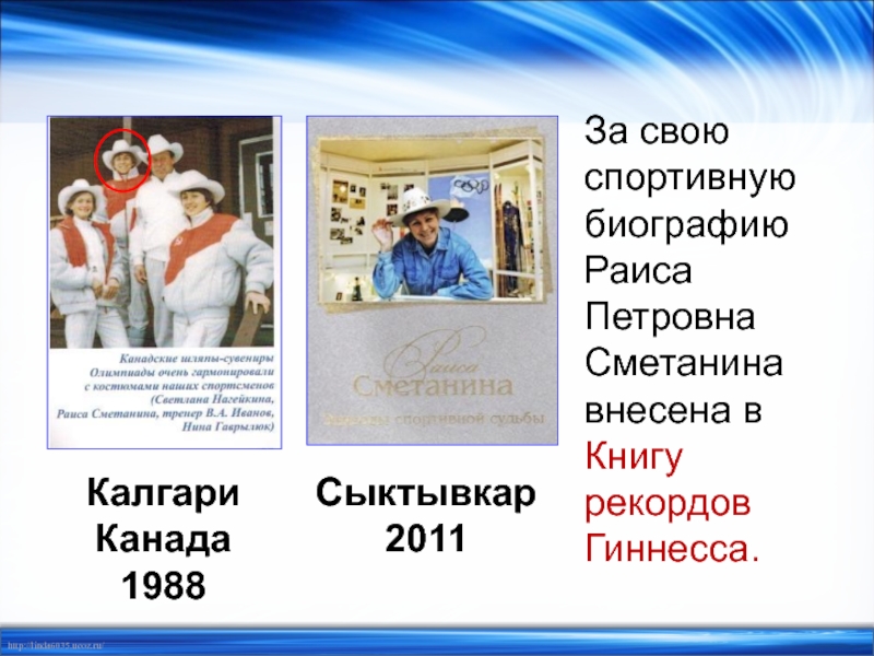 За свою спортивную биографию Раиса Петровна Сметанина внесена в Книгу рекордов