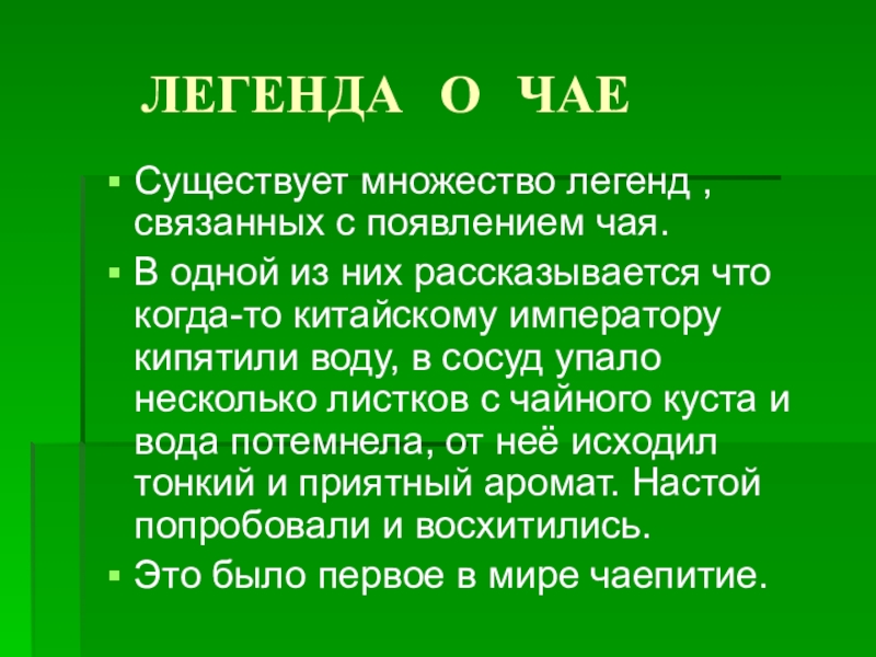 Слайд 8 ЛЕГЕНДА О ЧАЕ