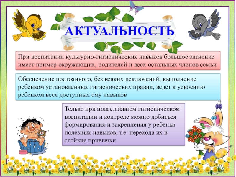 Только при повседневном гигиеническом воспитании и контроле можно добиться формирования и закрепления у ребенка полезных навыков, т.е. перехода их в стойкие привычки