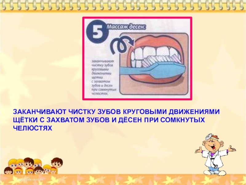 ЗАКАНЧИВАЮТ ЧИСТКУ ЗУБОВ КРУГОВЫМИ ДВИЖЕНИЯМИ