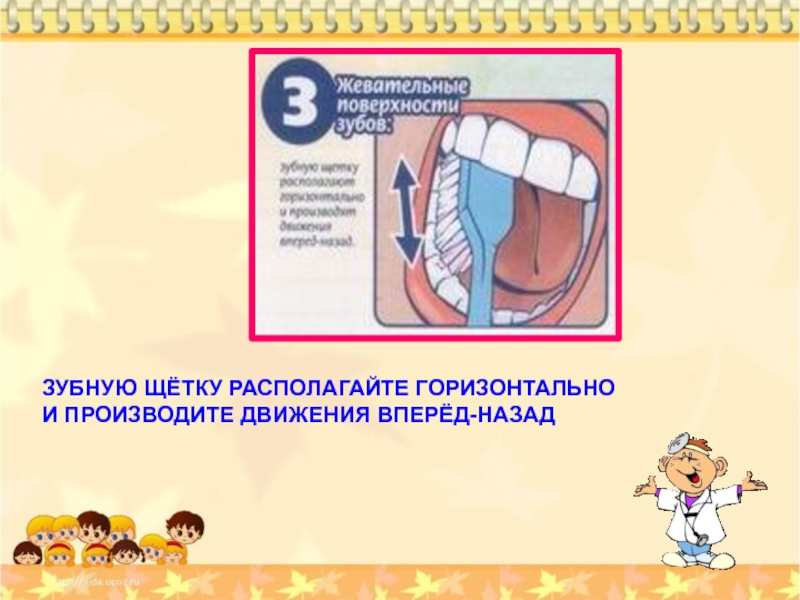 ЗУБНУЮ ЩЁТКУ РАСПОЛАГАЙТЕ ГОРИЗОНТАЛЬНО
