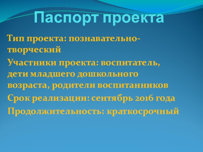 Слайд 2Паспорт проекта