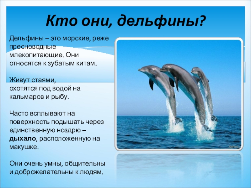 Я считаю, что люди должны учиться у дельфинов доброте, умению помочь друзьям и близким в трудную минуту !