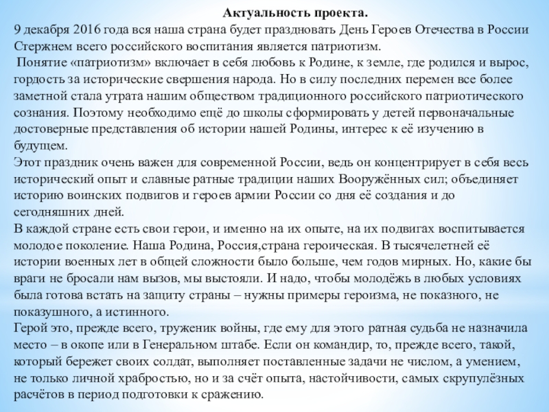 9 декабря 2016 года вся наша страна будет праздновать День Героев Отечества в России Стержнем всего российского воспитания является патриотизм.