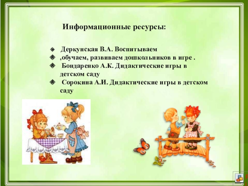 Введение в образовательный процесс специально разработанного тематического планирования дидактических игр.