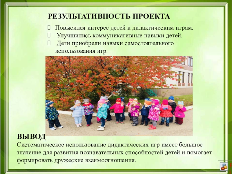 Систематическое использование дидактических игр имеет большое значение для развития познавательных способностей детей и помогает формировать дружеские взаимоотношения.