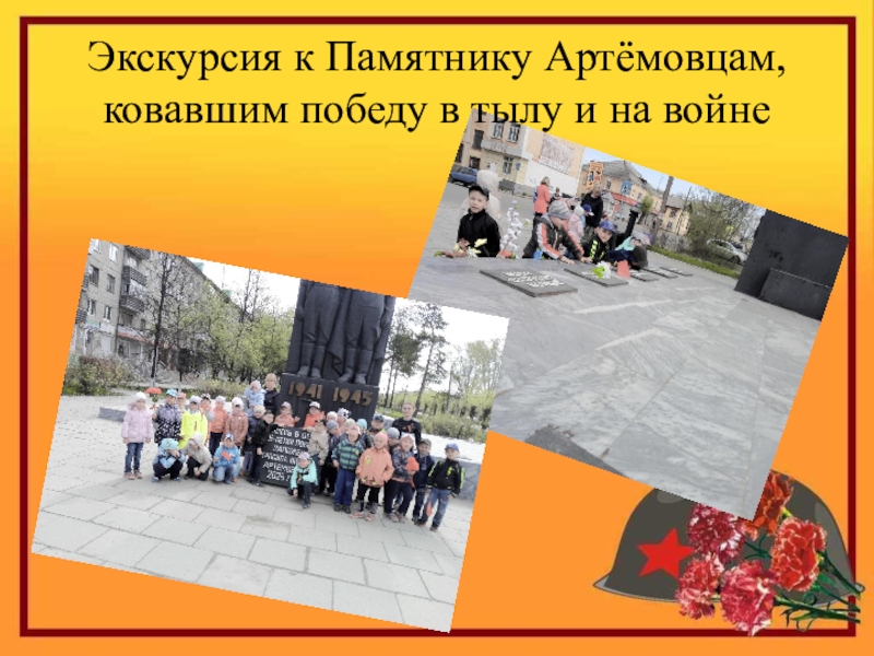 Слайд 11Экскурсия к Памятнику Артёмовцам, ковавшим победу в тылу и на войне