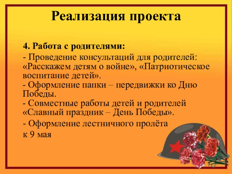тыла, ветеранах войны, через совместную деятельность родителей и детей в детском саду и семье.