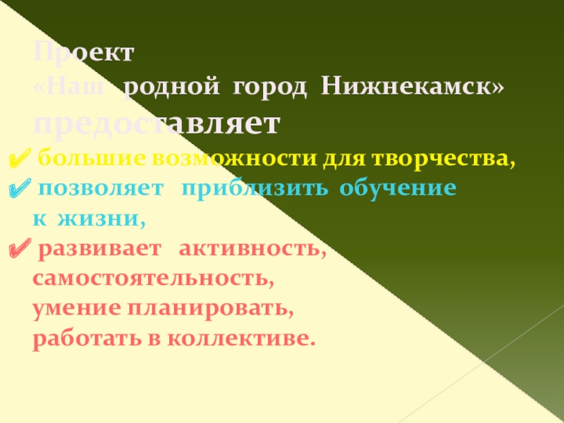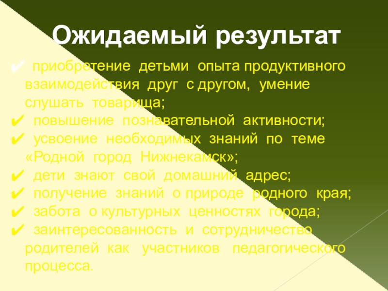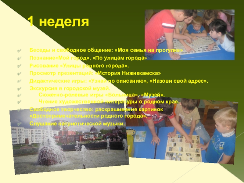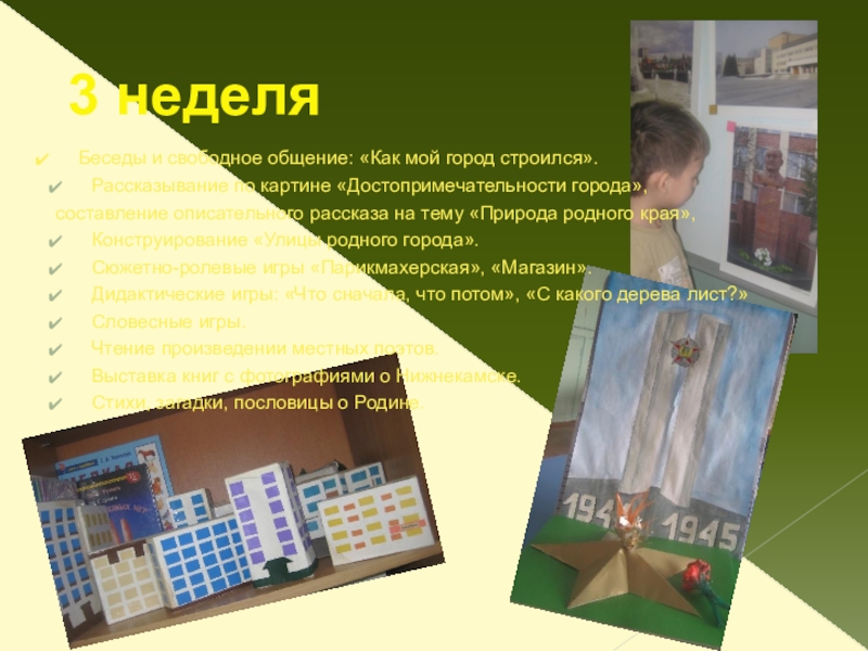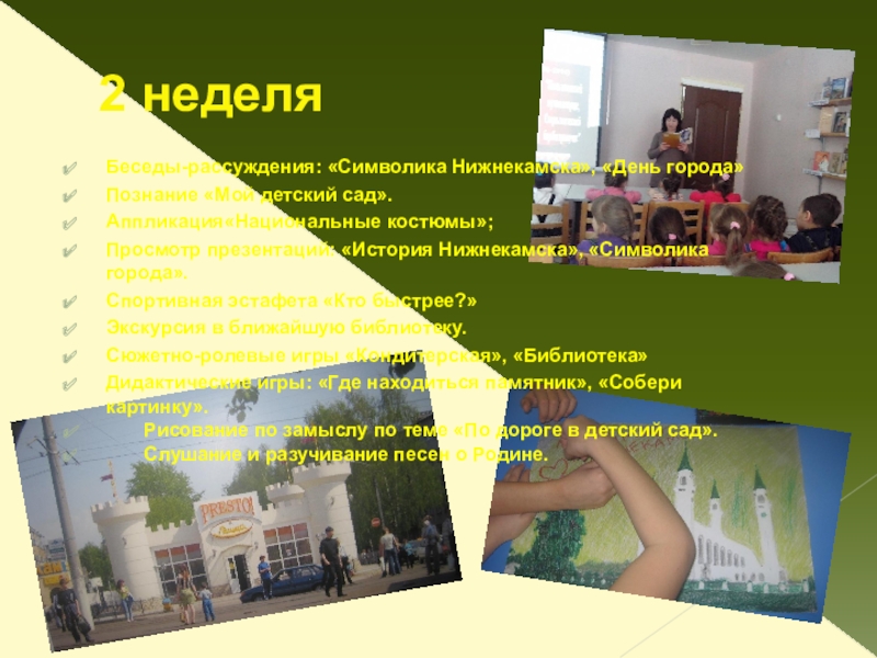 усвоение необходимых знаний по теме «Родной город Нижнекамск»;