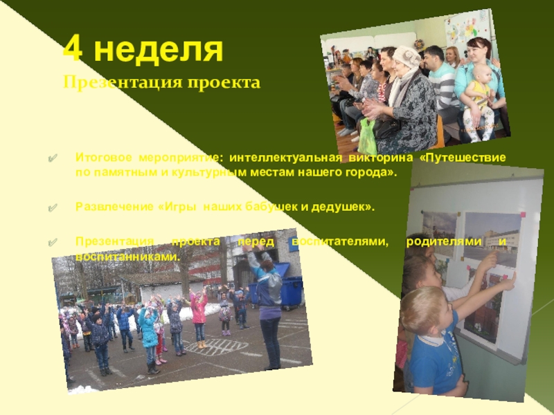 Презентация проекта перед воспитателями, родителями и воспитанниками.