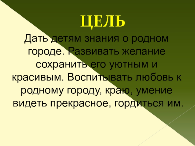Дать детям знания о родном городе. Развивать желание сохранить его уютным