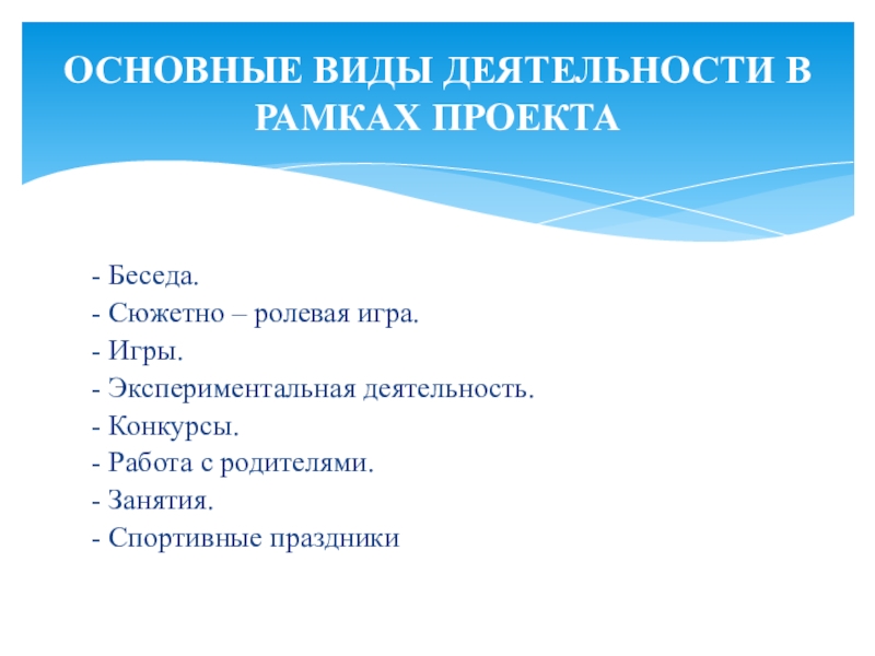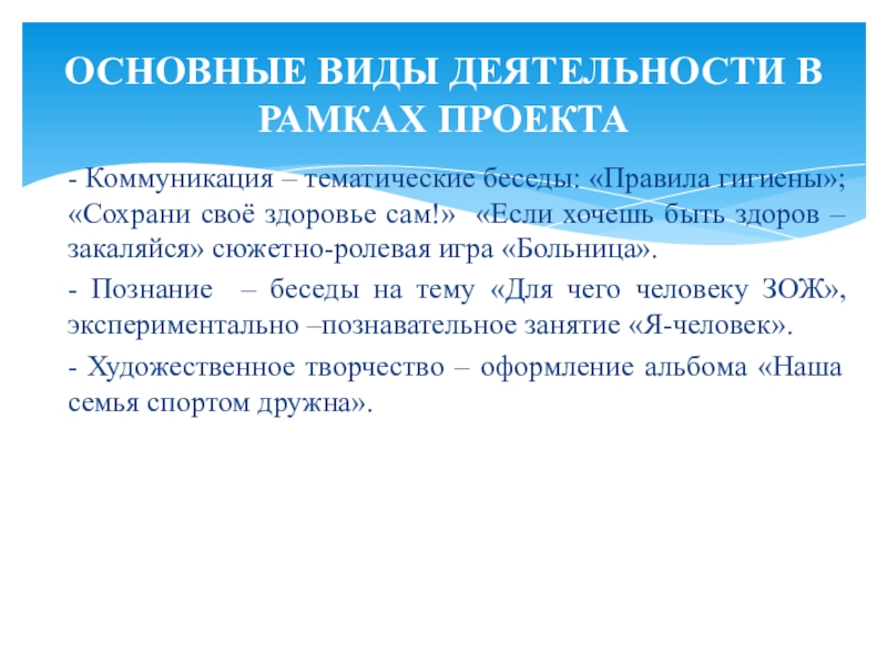 ОСНОВНЫЕ ВИДЫ ДЕЯТЕЛЬНОСТИ В РАМКАХ ПРОЕКТА