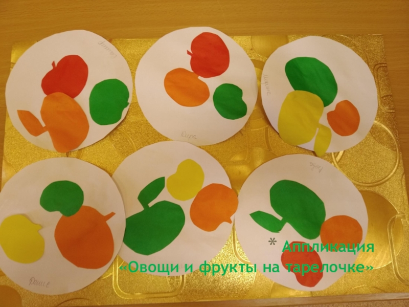Слайд 8Аппликация «Овощи и фрукты на тарелочке»