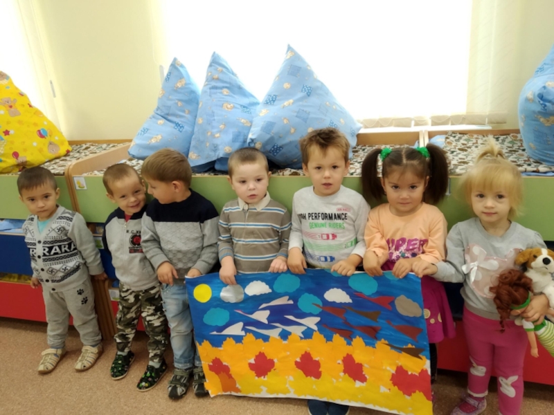 Слайд 11Коллективная композиция «Птицы улетают в теплые края»