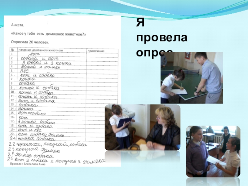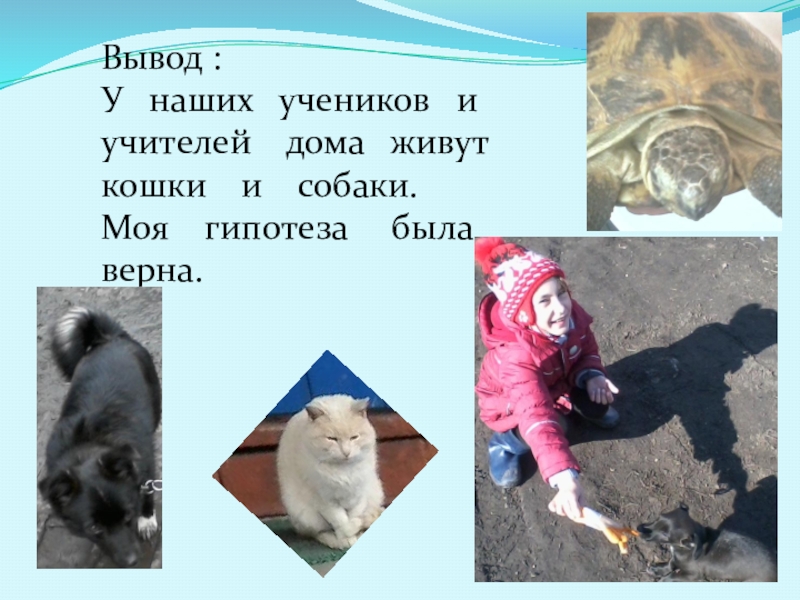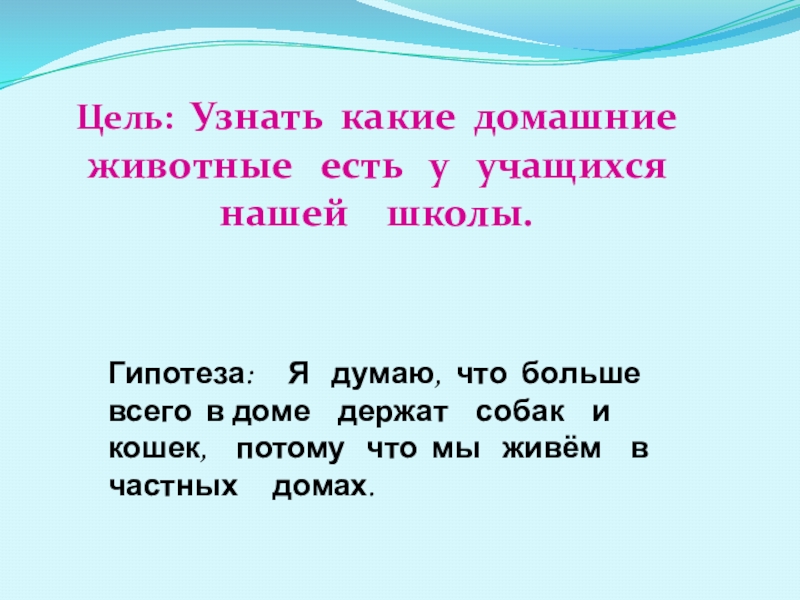 Гипотеза: Я думаю, что больше всего в доме держат собак и кошек, потому что мы живём в частных домах.