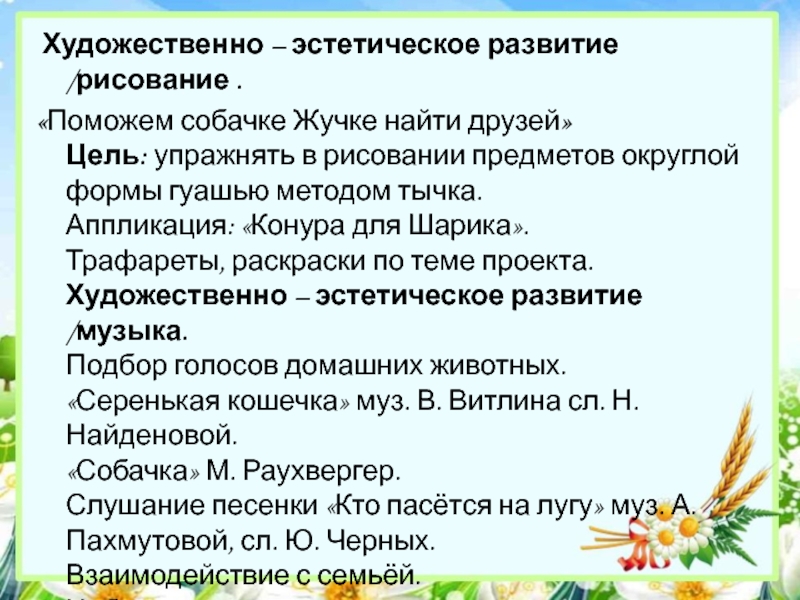 Слушание песенки «Кто пасётся на лугу» муз. А. Пахмутовой, сл. Ю. Черных.