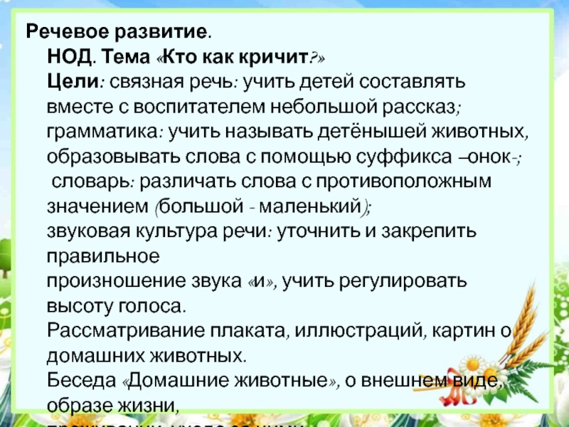 НОД. Тема «Кто как кричит?»
