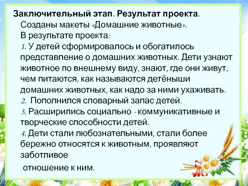 Слайд 19 Заключительный этап. Результат проекта.