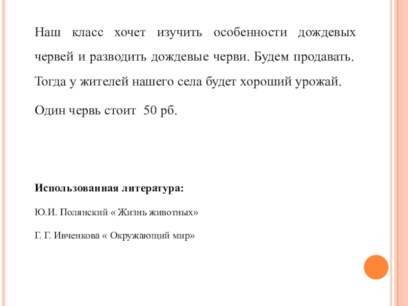 Слайд 17Наш класс хочет изучить особенности дождевых червей и разводить дождевые черви.