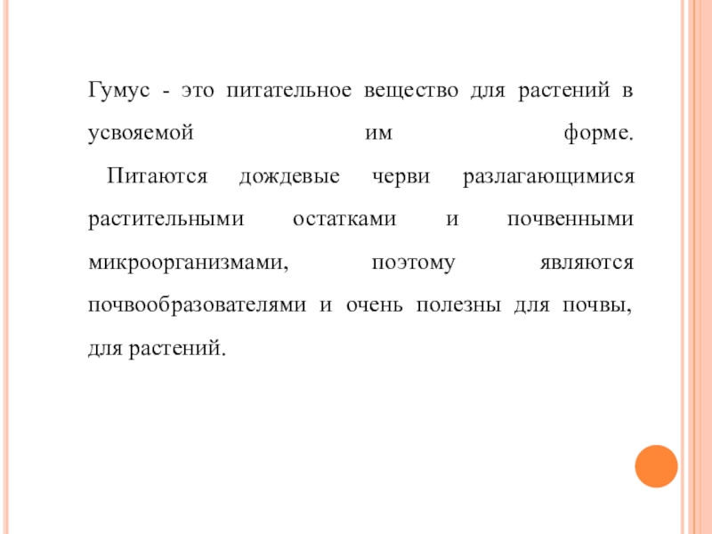 Слайд 15Гумус - это питательное вещество для растений в усвояемой им форме.