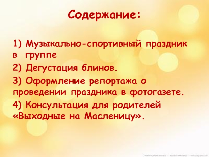 4) Консультация для родителей «Выходные на Масленицу».