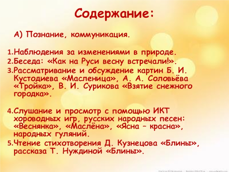 Обобщение знаний детей о Масленице, закрепление умения различать и
