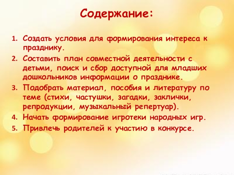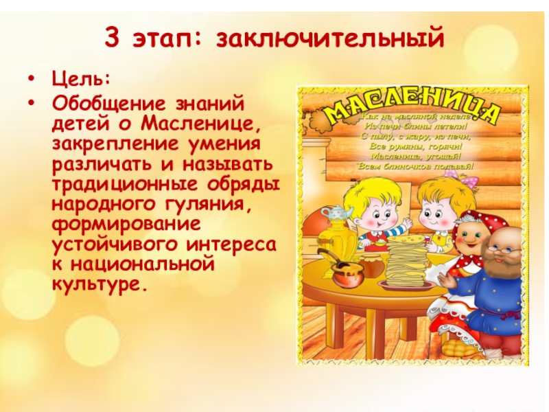 - Приобщение детей к традициям проведения народного праздника.