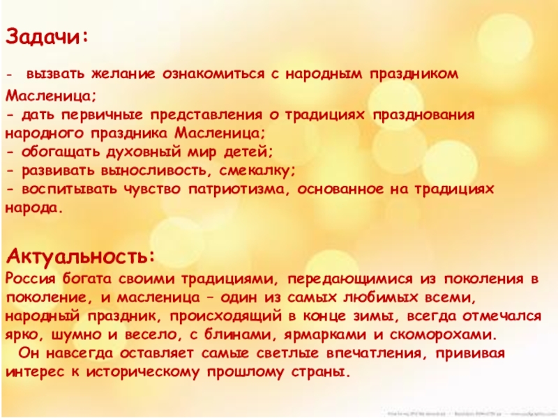- вызвать желание ознакомиться с народным праздником Масленица;