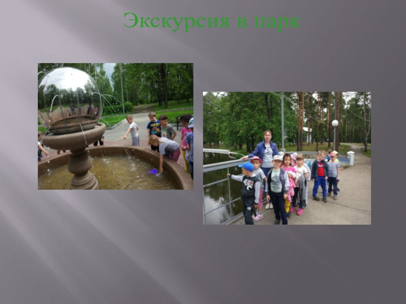 Мы группой ходили на экскурсию в парк, где наблюдали за растительностью и фантаном;